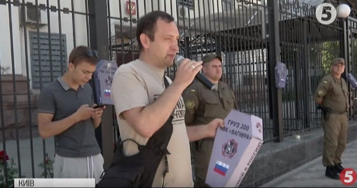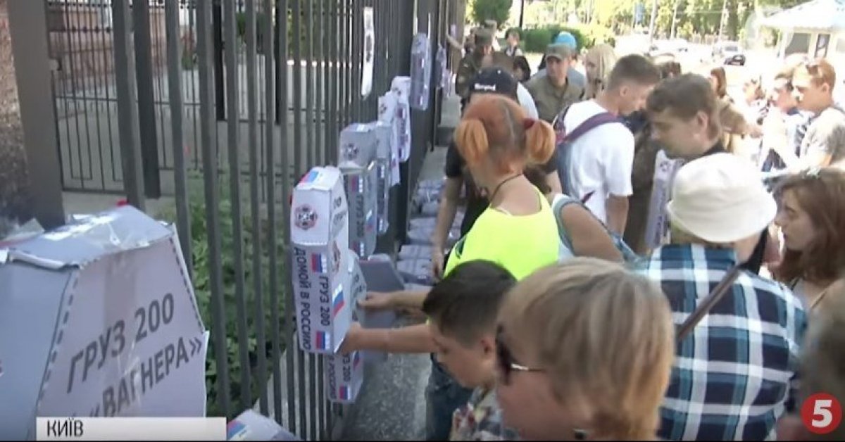 Під російським посольством вимагали забрати кремлівських найманців з окупованих районів Донецької і Луганської областей. Про таке повідомляє "5 канал".