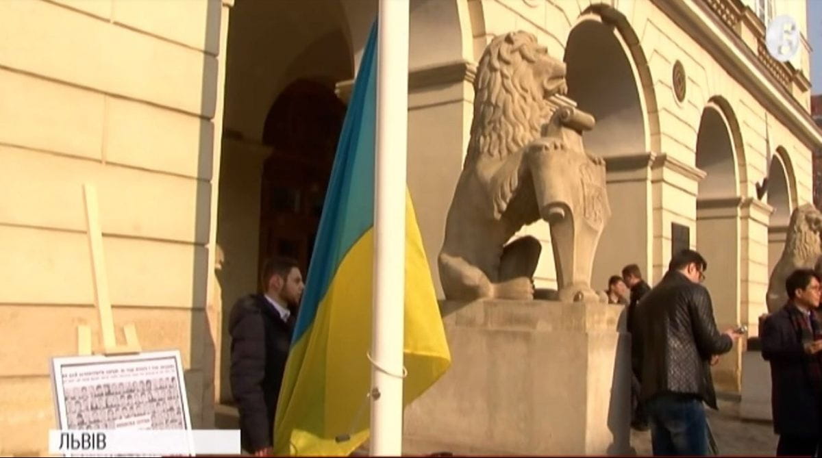 Прапор часів Революції Гідності підняли в середмісті Львова. В такий спосіб активісти нагадали містянам про п'яті роковини найкривавіших подій Майдану.