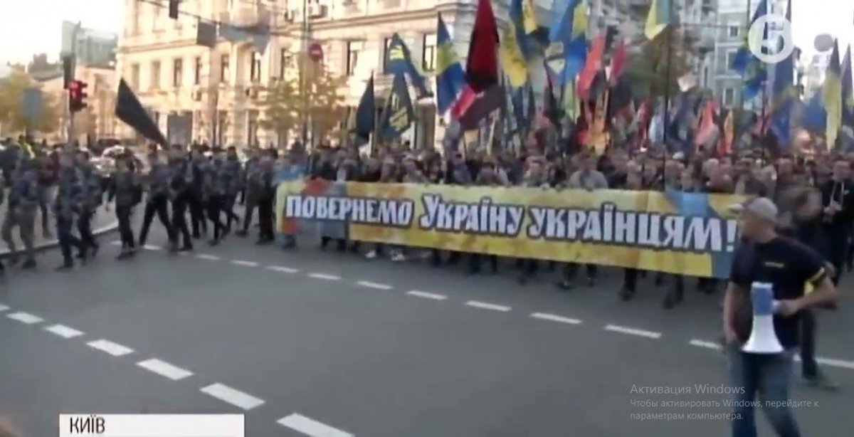 Фаєри та націоналістичні гасла. Традиційний Марш УПА влаштували у столиці. Під гаслом "Повернемо Україну українцям" у середмісті Києва зібралися кілька тисяч людей. Про це повідомляє кореспондент "5 каналу" з місця подій.
