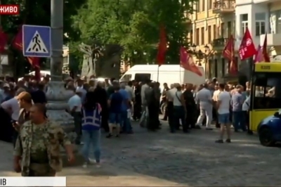 Центр Києва зранку у вівторок, 19 червня, паралізований. Йдеться про низку вулиць, що ведуть до урядового кварталу та Верховної Ради. Там, біля будівель законодавчої та виконавчої влади, відбувається акція протесту. Через це рух транспорту частково перекритий.