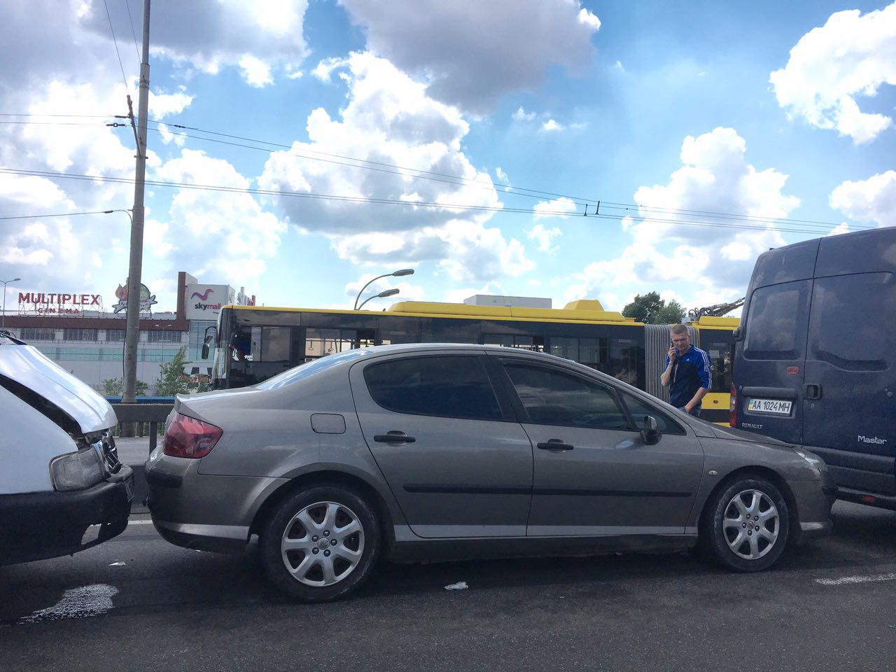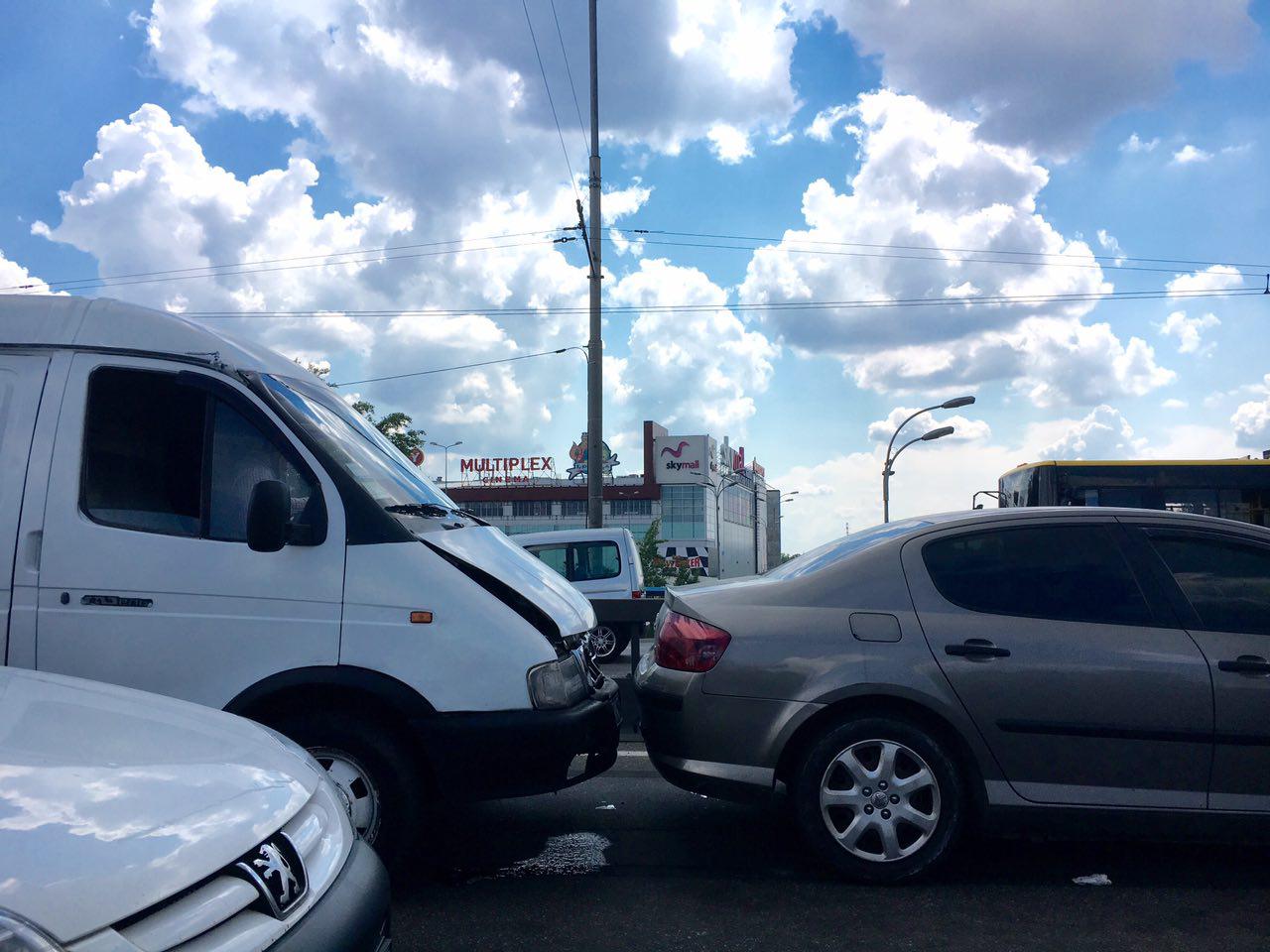 У столиці на Московському мосту сталося масштабне ДТП. Зіштовхнулися одразу шість автомобілів, зокрема, мікроавтобуси та легкові автомобілі. На місці інциденту зараз працює патрульна поліція. Всі обставини аварії з'ясовуються.