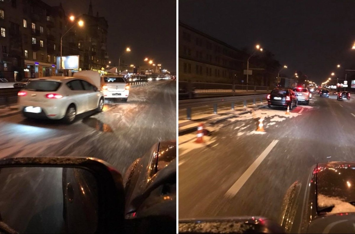 Надвечір вівторка, 16 січня, у столиці на проспекті Перемоги очевидці нарахували понад десять аварій. Про це вони попереджають на сторінках у соцмережах.