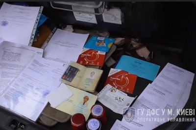 За результатами обшуків у затриманих вдома та на "роботі", було вилучено 319 тис. грн та $1 тис. готівки, печатки СГД з ознаками фіктивності, банківські картки фіктивних компаній, документи, чорнові записи, комп'ютери та мобільні телефони.