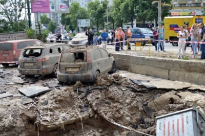 Фонтан води був такий потужний, що шмат асфальту підняло і відкинуло на кілька метрів.