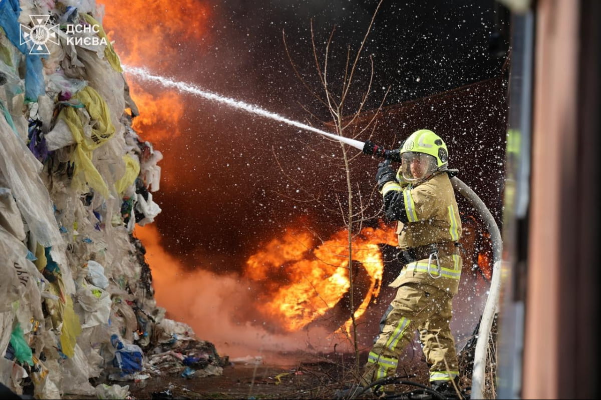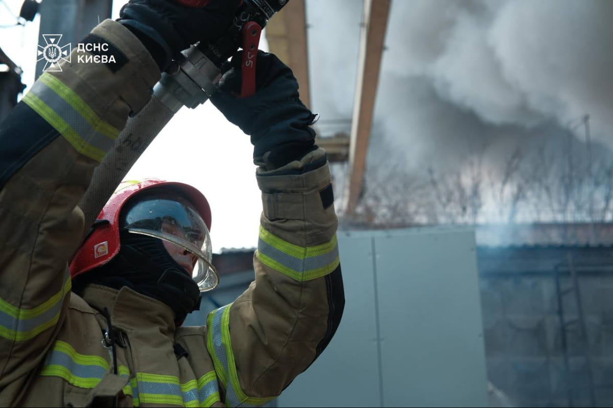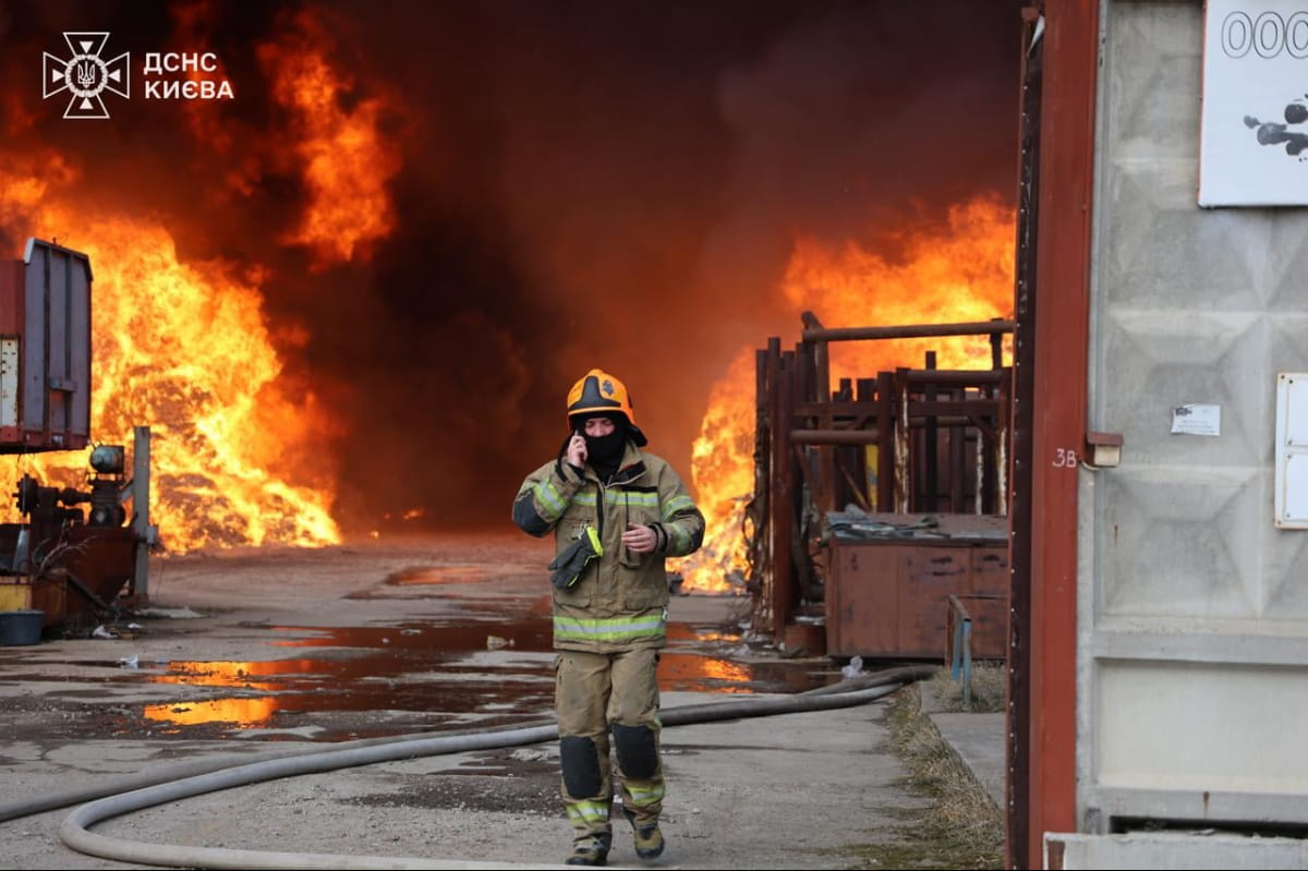 У Голосіївському районі Києва спалахнула масштабна пожежа на території підприємства. Вогонь охопив близько 2000 квадратних метрів.