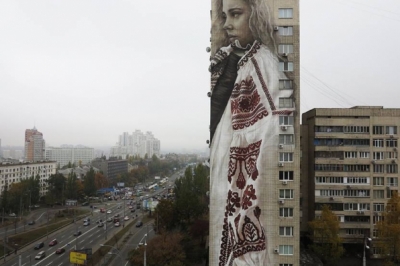 Над малюнком дівчини у вишиванці австралійський художник Гвідо Ван Хелтен працював упродовж двох тижнів, навіть під час негоди. Мурал розміщений на фасаді 18-поверхового житлового будинку і сягає завдовжки 43 метри. Це найбільший твір художника не лише в Україні, а й в Європі. Раніше Гвідо Ван Хелтен вже намалював у Києві гігантський портрет жінки з конваліями за мотивами однойменного вірша Лесі Українки. Загалом, упродовж року в столиці намалювали близько 20 муралів.