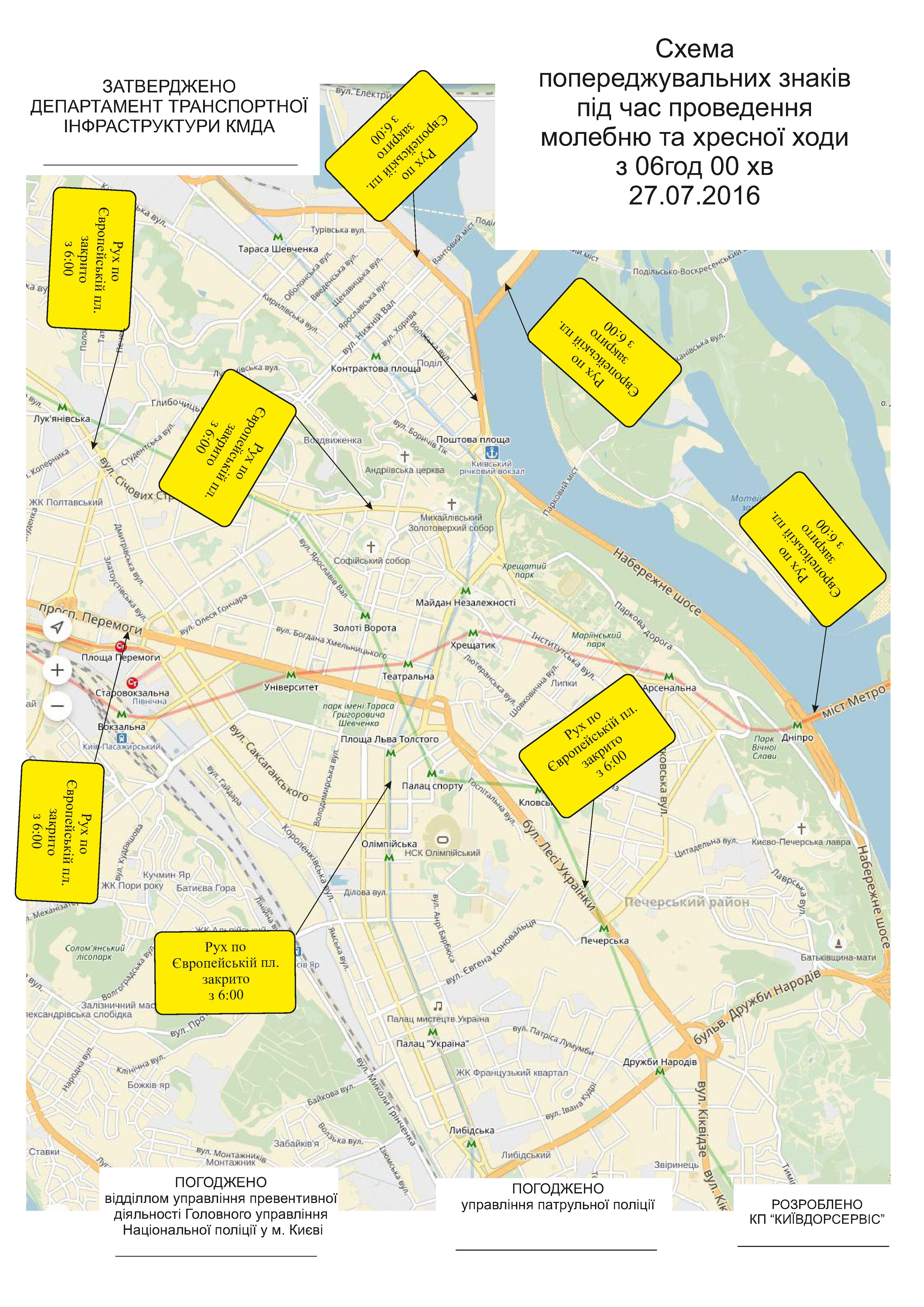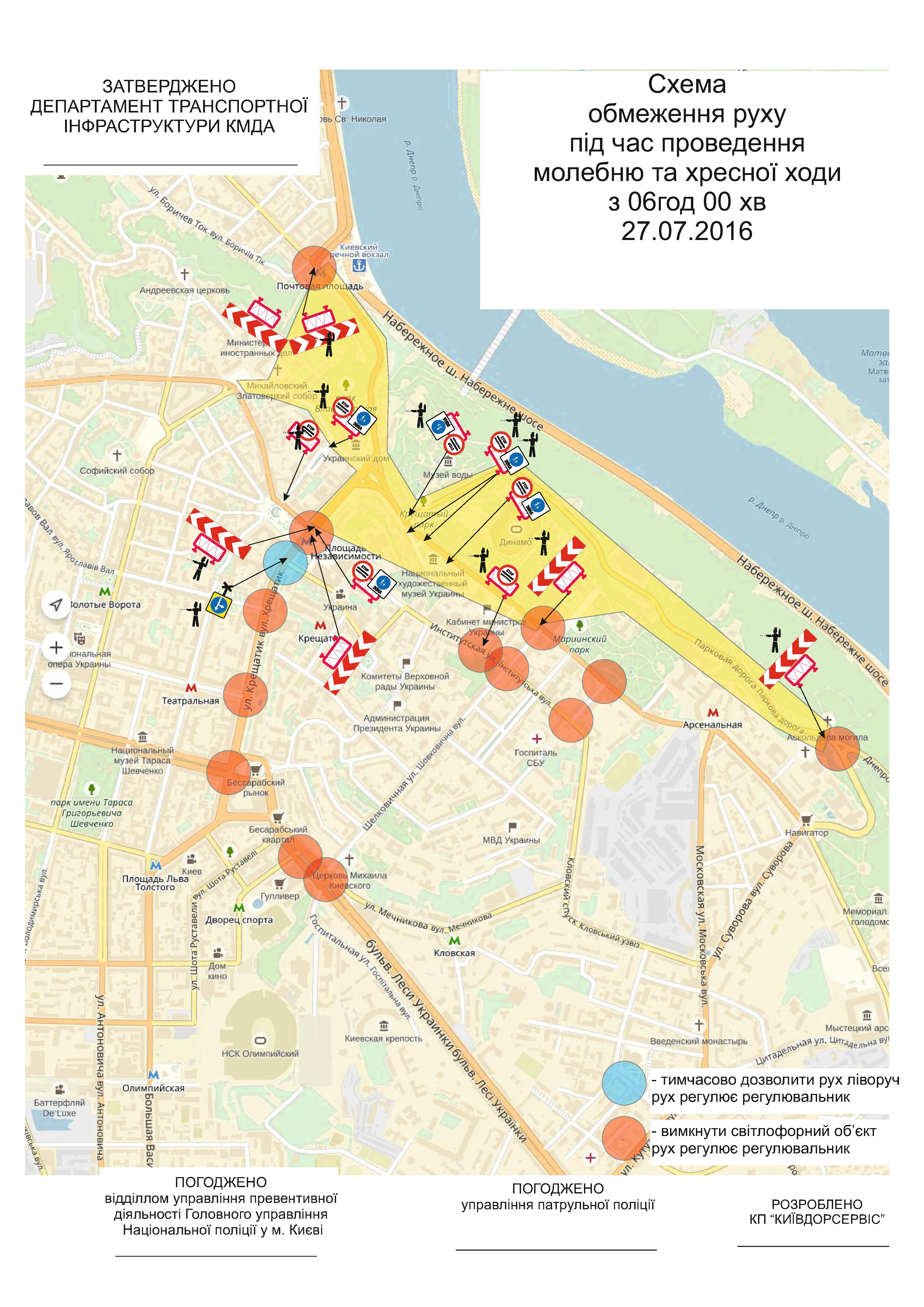 У середу, 27 липня, у Києві у зв’язку з проведенням масових заходів (так званої хресної ходи), буде перекрито рух транспорту кількома вулицями. Про це повідомляє Патрульна поліція міста Києва.