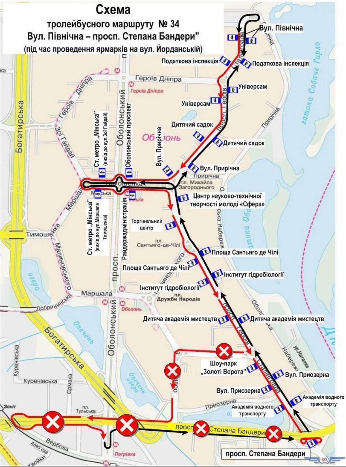 На вул. Марини Цветаєвої, на ділянці від просп. Маяковського до вул. Закревського, рух тролейбусів маршруту № 37-А буде організовано за тролейбусним маршрутом № 37.