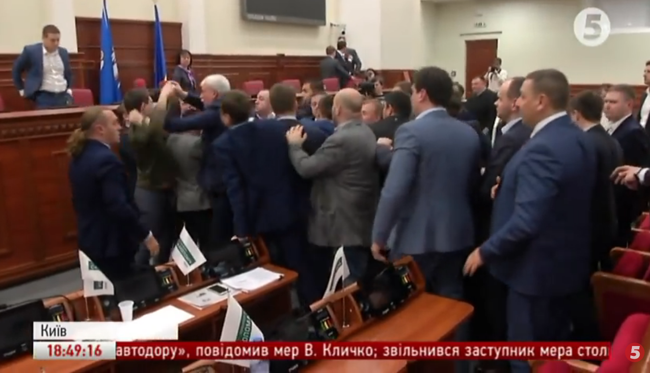 У Київраді 2 березня сталася бійка між депутатами фракції "Свобода" та "Солідарність". Кулаками почали махати після того, як до трибуни вийшов народний депутат Юрій Левченко та запропонував подати у відставку чільнику столиці Віталію Кличку, передає кореспондент "5 каналу".