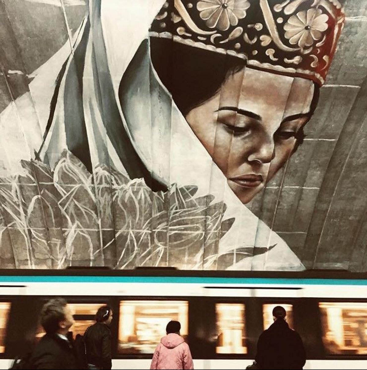На станції метро "Осокорки" у столиці з'явився мурал, що зображує кримськотатарську жінку. Про це повідомила перший заступник міністра інформаційної політики України Еміне Джапарова на сторінці у Facebook.
