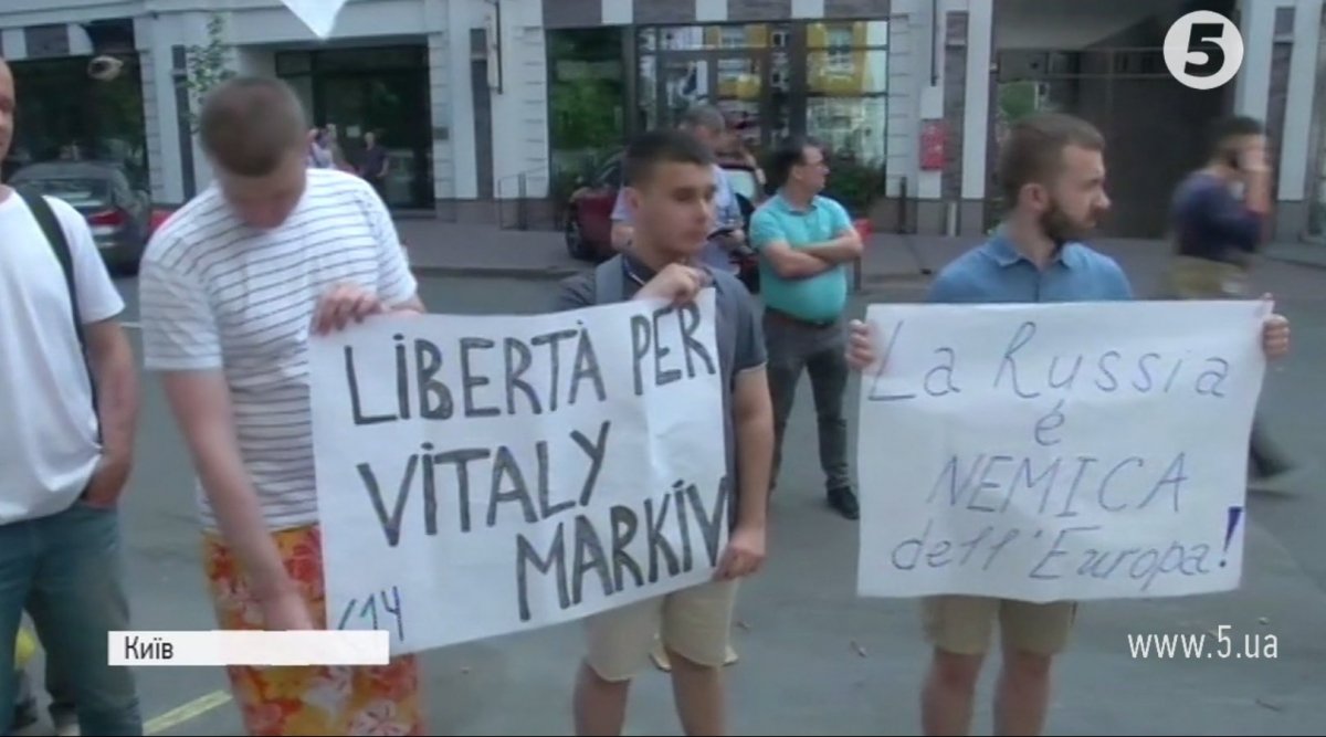 Як зазначається, пізніше учасники акції написали звернення до італійської влади з вимогою об'єктивно розслідувати справу Віталія Марківа і передали його працівникам посольства.