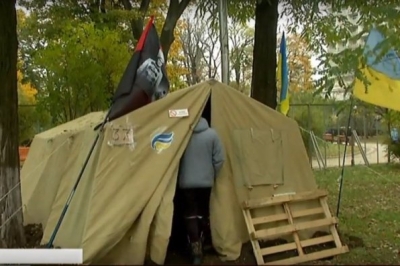 Намет мешканців Черкащини біля Верховної Ради, який начебто фінансує колишній регіонал Володимир Олійник, спробували відшукати кореспонденти "5 каналу".
