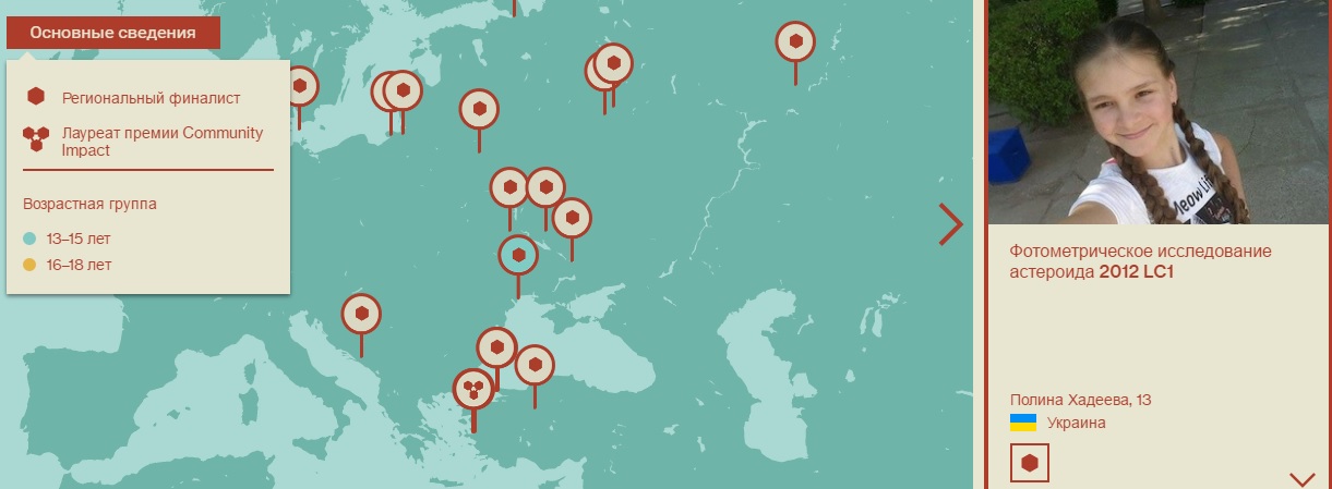 Поліна Хадеєва, 13 років, місто Одеса, з проектом "Фотометричне дослідження астероїда 2012 LC1"