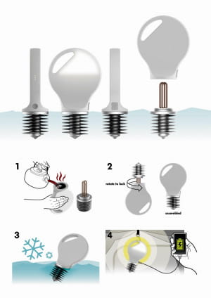Верхня частина лампи — це вакуумна колба, яка "зберігає" гарячу воду для нагріву теплової труби. Труба своєю чергою, з'єднується з модулем термоелектричного генератора. Інший кінець модуля являє собою спіральний радіатор, що містить перезаряжаемую батарею.
