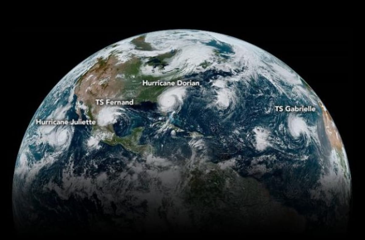 Національне управління з аеронавтики й дослідження космічного простору NASA опублікувало знімок Землі, на якому можна побачити відразу чотири тропічних шторми. Ці урагани наче вишикувалися в одну лінію. Про таке повідомляє "24 канал".