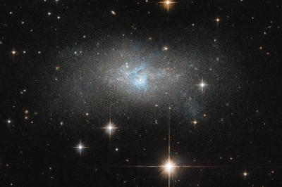 Науковці за допомогою телескопа Hubble зробили знімок карликової галактики IC 4870, в центрі якої можна помітити нитки блакитного газу. Про це повідомляє NASA.