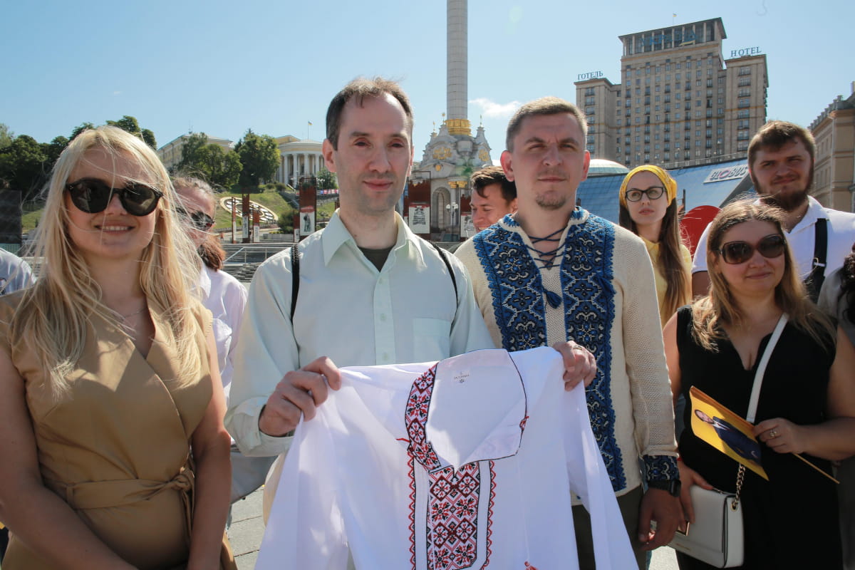 Вдячні українці просто на Майдані Незалежності віддали належне ентузіазму закордонного друга та вручили небайдужому британцю частку народної душі, втілену в тканині – вишиванку: "Ми дуже вдячні народу Великої Британії за підтримку, дуже вдячні Майклу Елстону за підтримку і хочемо подарувати символ ідентичності – українську вишиванку".