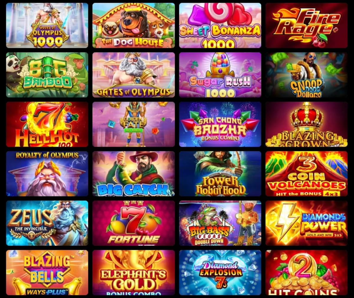 Платформа сформувала великий ігровий портфель – понад 5 000–5 700 тайтлів від 35–65 провайдерів (Playson, Pragmatic Play, Evoplay, NetEnt, Evolution Gaming та ін.).
