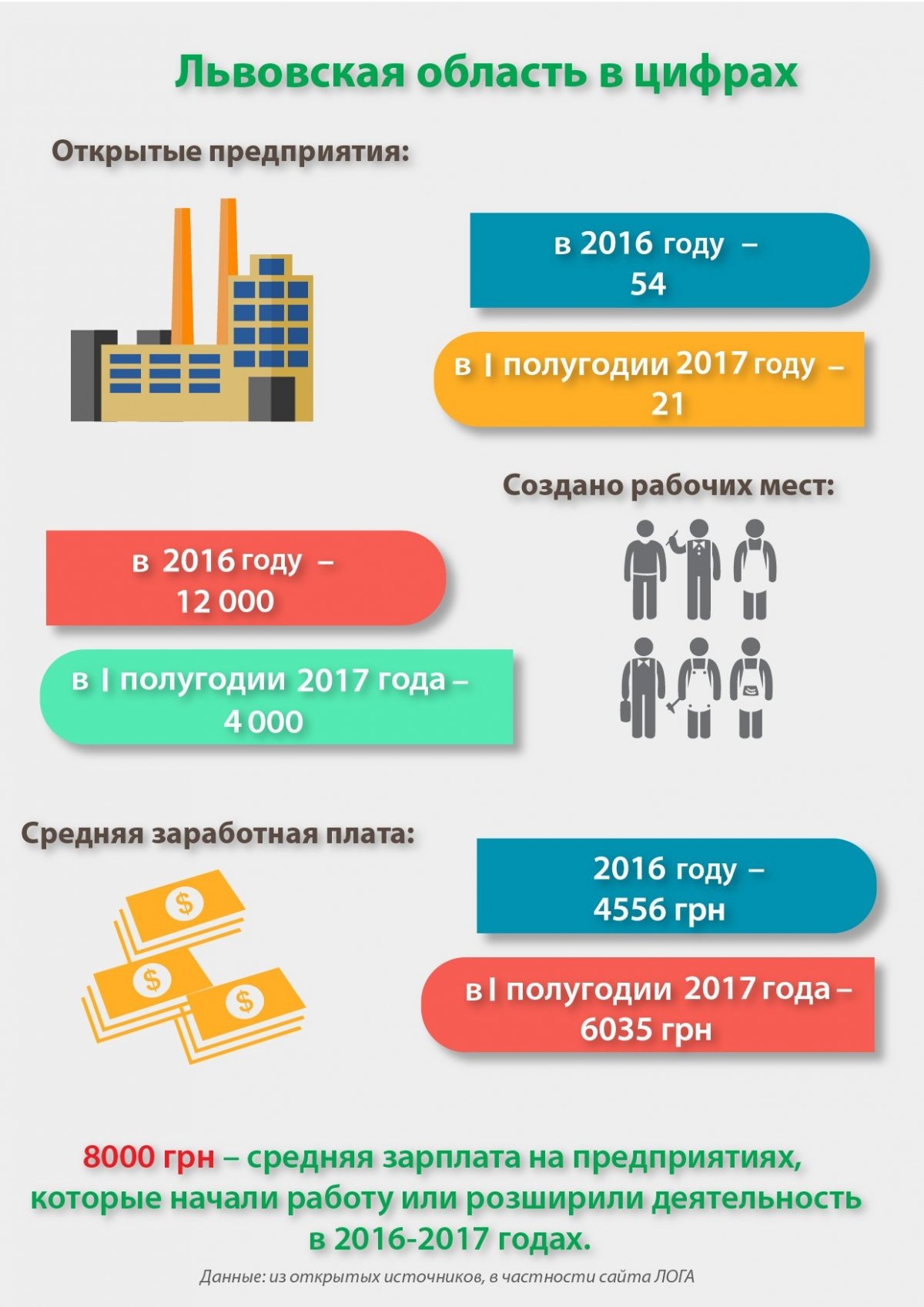 Цьогоріч Львівщина ввійшла у почесну трійку лідерів за кількістю відкритих підприємств. За останні два роки на Львівщині було відкрито 75 нових підприємств, що принесло регіону більше 16 тисяч нових робочих місць. Прикладом, саме на Львівщині відкрили найбільший в Західній Україні завод з виробництва димохідних систем з нержавіючої сталі. Це масштабний та складний проект з інвестиціями 5 мільйонів гривень в українську промисловість. Що важливо: навіть самі підприємці назвали Львівську область у топ-5 регіонів, де варто починати та розвивати бізнес.