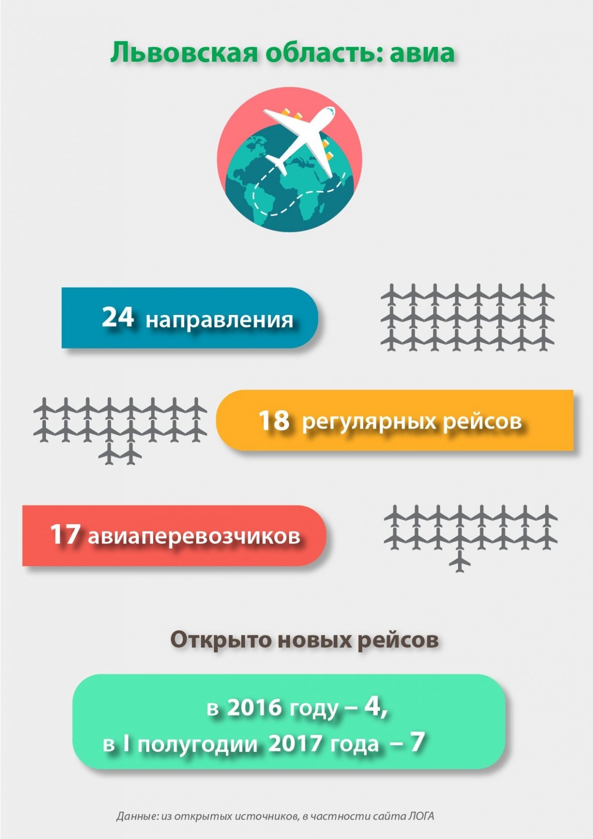 Міжнародний аеропорт "Львів" ім. Данила Галицького у 2016 році збільшив пасажиропотік на 29%. Розширення географії польотів зі Львову призвело до значного росту кількості пасажирів. Якщо ще у 2015 році ця цифра становила 570 тисяч чоловік, то вже до кінця 2017 року є мета збільшити пасажиропотік до 1 мільйона пасажирів. І, швидше за все, львівському аеропорту це вдасться.