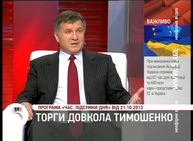 Арсен Аваков, народний депутат, «Батьківщина»: "Мы говорим о соглашении между 3 субьектами. Евросоюзом, оппозицией и властью в Украине. Есть формат Кокса-Квасневского, наделенными чрезвычайными полномочиями. И вне этого формата - нельзя продуцировать хотелки и говорить, что "мы передумали и хотим вот так или вот так". Она дала согласие на лечение в Германии без полной реабилитации, с тем, чтобы реабилитироваться в дальнейшем, с тем, чтобы не тормозить ситуацию. И оппозиция, и Тимошенко свой ход сделали. С другой стороны - мы ждем, что власть сформулирует продолжение. Но мы его не видим. Начинаются торги".