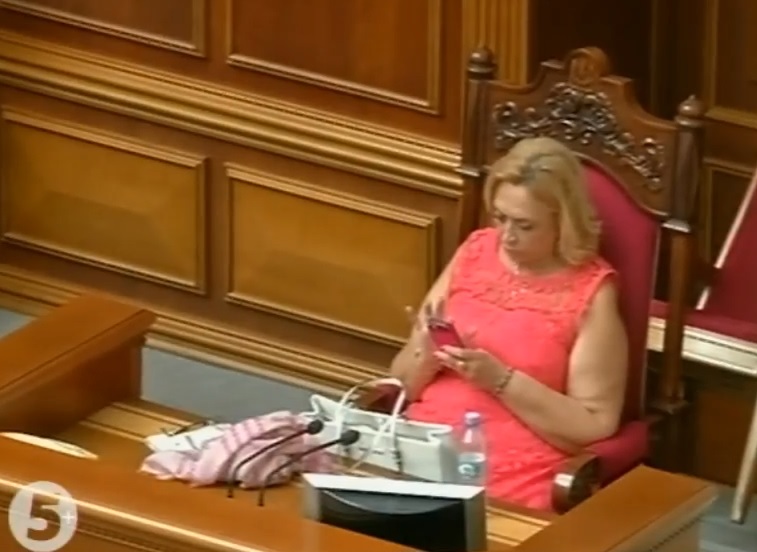 Народний депутат від фракції "Батьківщина" Надія Савченко зайняла місце голови ВР; на місці Оксани Сироїд - народний депутат від фракції "Радикальної партії" Оксана Корчинська, у президентському кріслі знаходиться Олександра Кужель. Також за президією стоять керівники цих двох фракцій Юлія Тимошенко та Олег Ляшко та інші представники фракцій, передає "Укрінформ".