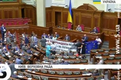 Після такої картинки важко вразити залу. батьківщина намагається. Вимогою негайно ратифікувати угоду по асоціацію. Про це та інше – в сюжеті "5 каналу".