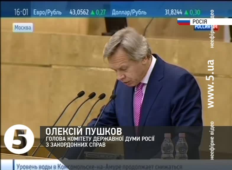 Олексій Пушков, голова комітету з закордонних справ Державної Думи: «В последнее время все более очевидно, что именно европейские политики посредством прямого политического нажима и откровенного выкручивания рук – в том числе, при решении внутренних вопросов Украины – принуждают официальный Киев поступиться частью суверенитета Украины, и, фактически, перевести свои торгово-экономические связи под контроль Брюсселя».