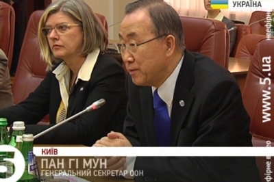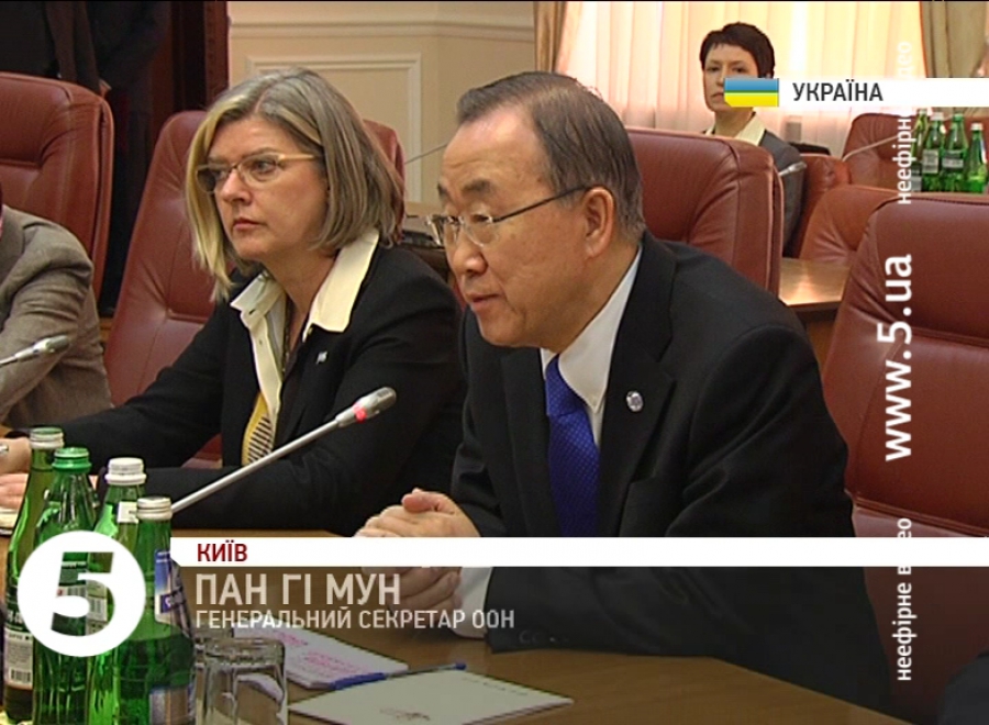 Він наголосив: Україна сподівається, що міжнародна спільнота дасть гідну відповідь на російську агресію. Генсек ООН своєю чергою, привітав Україну з підписанням політичної частини угоди про асоціацію з ЄС. Він зазначив, що український народ зараз переживає травму, якої не повинна переживати жодна країна та висловив солідарність з народом України та її урядом. І запевнив: з підтримкою міжнародної спільноти – Україні вдасться пережити важкі часи.