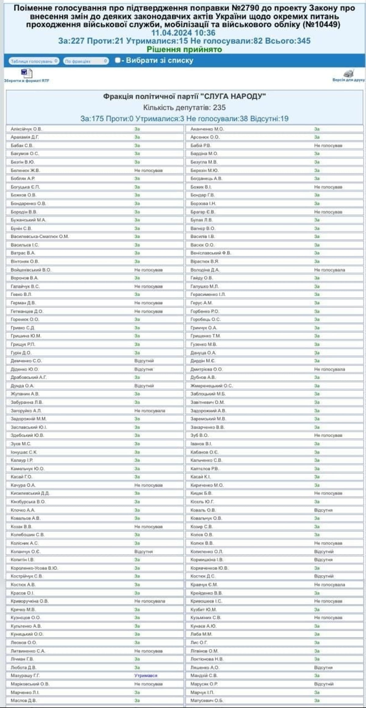 Народна депутатка з фракції "Європейська Солідарність", голова Комітету з питань інтеграції України з ЄС Іванна Климпуш-Цинцадзе оприлюднила результати голосування за поправку щодо скасування демобілізації через 36 місяців. Як відомо, її вдалося протягнути 227 голосами. Про це повідомляє пресслужба партії "ЄС".