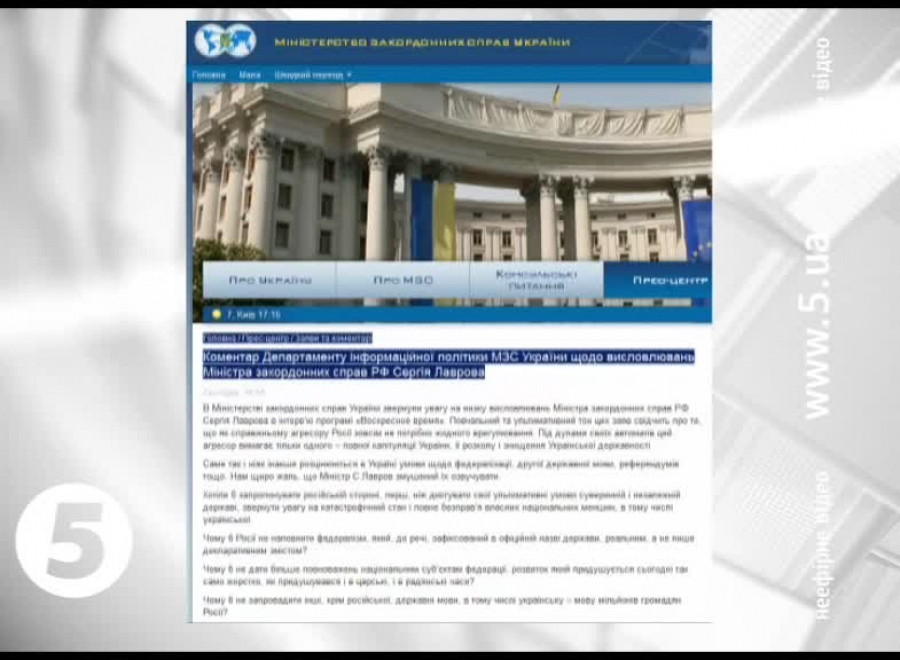 Такою заявою міністерство відреагувало на інтерв'ю Сергія Лаврова російському телебаченню. Там міністр закордонних справ Росії, зокрема, зазначив: Україна має поважати свої національні меншини і перетворитися заради них на федерацію.