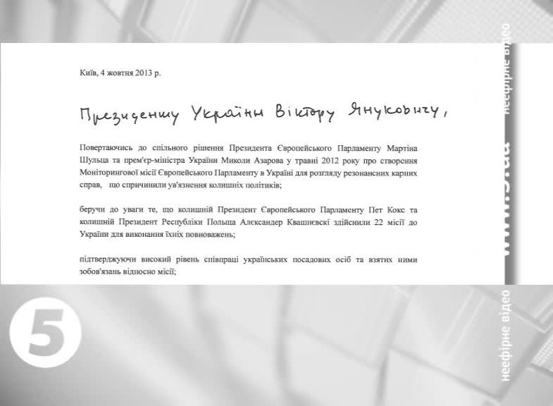 У документі Пета Кокса та Олександар Квасневського йдеться: підписання Угоди про асоціацію на Вільнюському саміті 29 листопада - напряму залежить від рішення Віктора Януковича помилувати Юлію Тимошенко. На їхнє переконання, це необхідно зробити, враховуючи поради медиків, які наголошують на негайному хірургічному лікуванні української опозиціонерки.