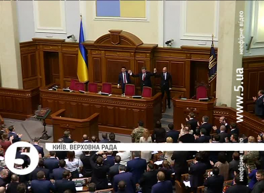 У залі - все зворушливіше. Гімн і молитва. Память Небесної сотні і загиблих в АТО. Присяга хором. Замість найстаршого депутата її читає спікер Турчинов. Решта - вторить.