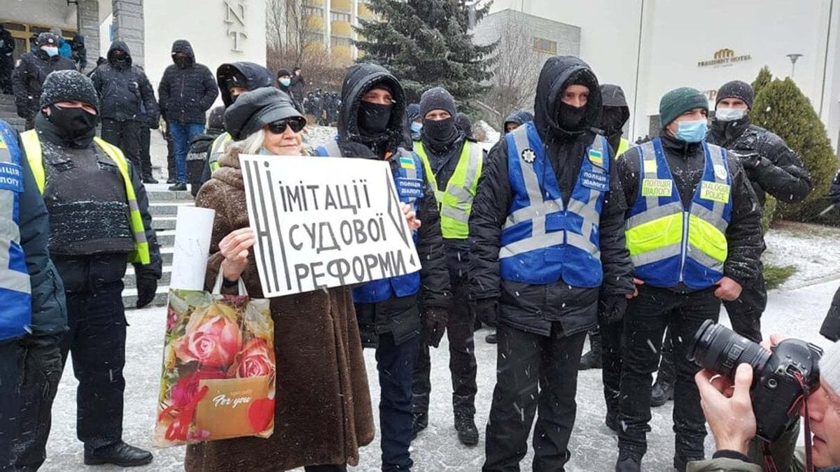 Чим організаторці альтернативного мітингу не догодила Державна архітектурно-будівельна інспекція і до чого тут з'їзд суддів – Анастасія докладніше не пояснила. Пенсіонери простояли на холоді акурат годину, а от судді засідатимуть упродовж трьох днів.