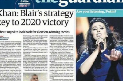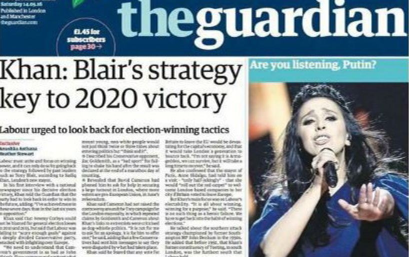 У британська газеті The Guardian вийшла стаття із фотографією фіналістки "Євробачення-2016" на обкладинці. Світлину із зображенням українки супроводжують слова "Ти чуєш, Путіне?", повідомляє "Дзеркало тижня".