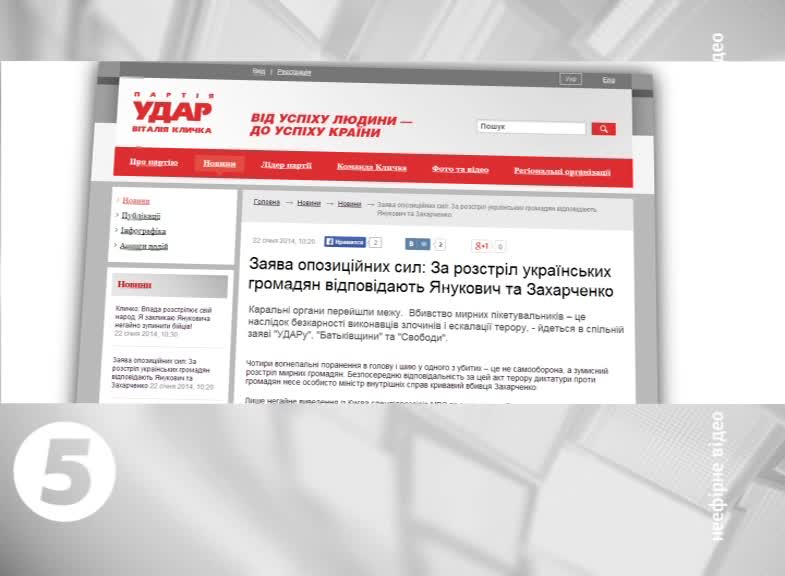 «Батьківщина», «УДАР» та «Свобода» заявляють, що межу було перейдено, а вбивство мирних пікетувальників – це наслідок безкарності виконавців злочинів і ескалації терору. Зокрема у заяві зазначається: вогнепальні поранення мітингувальників - це не самооборона, а зумисний розстріл мирних громадян. А життя і безпека кожного громадянина і смерть протестувальників це особиста відповідальність Президента. У Штабі національного спротиву тим часом оголосили про загальну мобілізацію. Депутат від "Батьківщини" Олександр Турчинов також припустив, що жертв від ранкового штурму беркутівців може бути більше, оскільки силовики забрали кількох поранених.