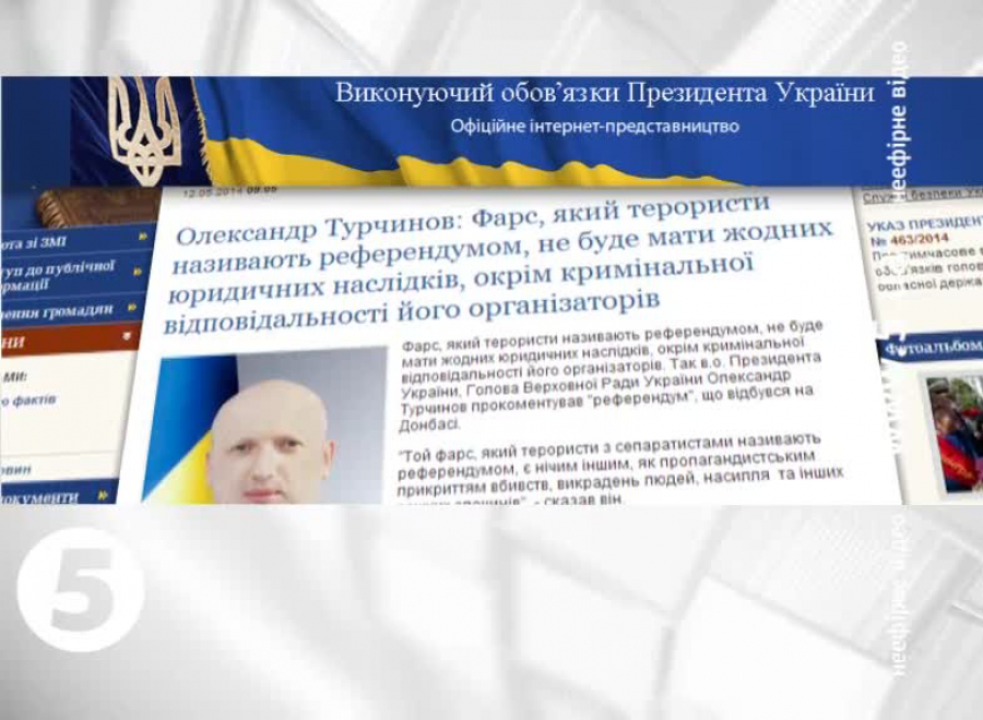 Організатори так званого референдуму на Сході України нестимуть кримінальну відповідальність, його результати не матимуть жодних юридичних наслідків. Про це заявив виконувач обов’язків Президента України Олександр Турчинов.
