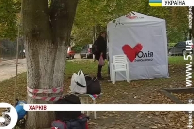 Площа перед будівлею суду повністю заповнена людьми. Зранку на територію лікарні заїхав автозак, та прибули депутати від "Батьківщини". Напередодні, близько десяти людей, у тому числі члени БЮТу з Миколаїва розгорнули намет на території медичного закладу. Активісти кажуть, шо екс-прем`єрку можуть силоміць вивезти на засідання суду. Намет активісти назвали громадською приймальнею депутата Романа Забзалюка.