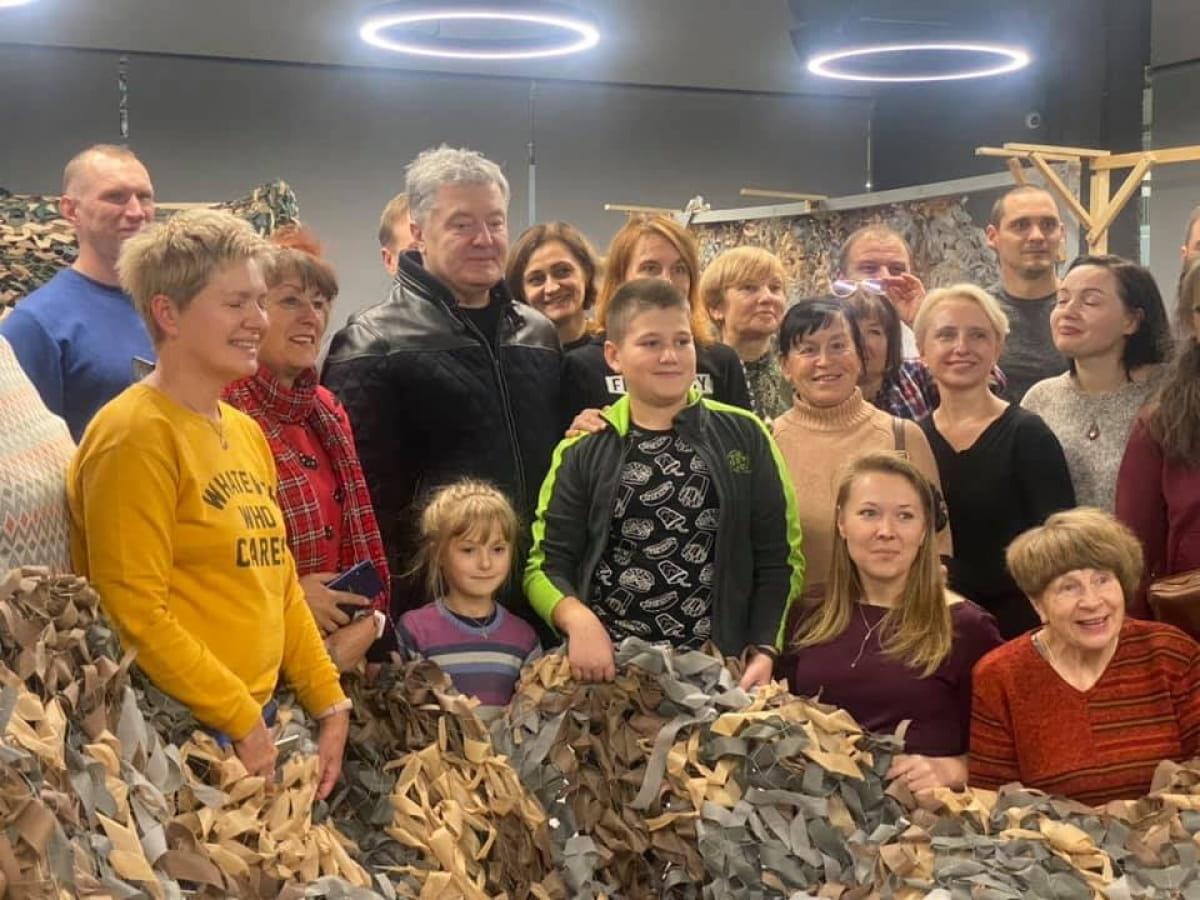9 жовтня у офісі "Європейської Солідарності" Петро Порошенко разом з волонтерами в’язали маскувальні сітки для фронту. Про це повідомляє нардепка "ЄС" Вікторія Сюмар на своїй сторінці у Facebook.