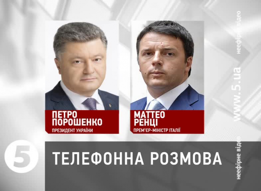 Президент подякував Матео Ренці за підтримку з боку Європейської ради, де Італія нині головує, а також – за рішення Великої сімки, що засудило агресію Росії.