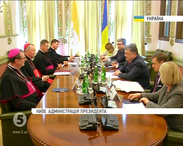 У п'ятницю, 17 червня, Президент України Петро Порошенко провів зустріч із державним секретарем Святого Престолу П’єтро Пароліном, під час якої лідери домовилися про спільні дії щодо залучення Ватикану до звільнення українських бранців.