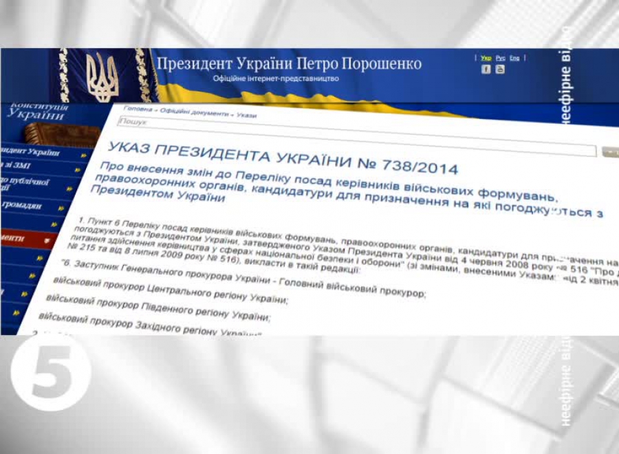Про таке йдеться в указі глави держави, оприлюдненому на його офіційному сайті. Тож з президентом мають узгоджувати претендентів на посади головного військового прокурора, а також військових прокурорів Центрального, Південного і Західного регіонів України.