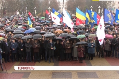 На центральному майдані міста депутати - окрім представників партії регіонів - висловити свій рішучий протест діям Уряду, який призупинив підготовку до підписання угоди про асоціацію з ЄС. Депутати ухвалили звернення до керівництва держави та лідерів країн ЄС щодо незмінності Євроінтеграційного курсу України. Сесія - переросла у Євромайдан. Попри негоду, підтримати європейський вибір України зійшлися і матері з візочками, і літні люди. Люди тримали гасла " Я хочу жити в Європі" та синьо-жовті прапори України і Євросоюзу.