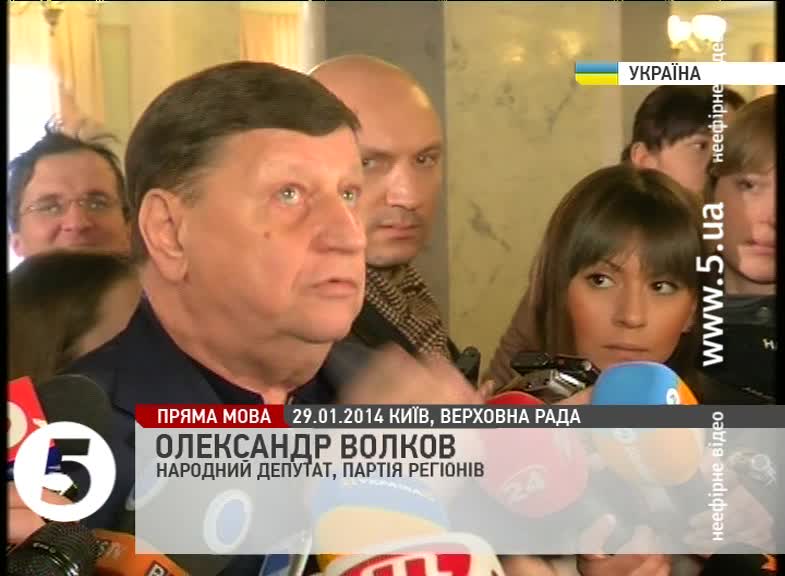 Олександр Волков, народний депутат, Партія регіонів: «Сьогодні замало вести перемовини з лідерами опозиції. Це моя, я абсолютно переконаний, я вважаю, що сьогодні потрібно йти до людей, треба йти на Майдан і слухати їх. І нічого не буде страшного. Треба говорити з усіма, це усі – громадяни нашої держави. І говорити треба з усіма і треба їх вислухати – чому вони там, що вони там, які у них пропозиції, які у них потреби, що вони хочуть?»
