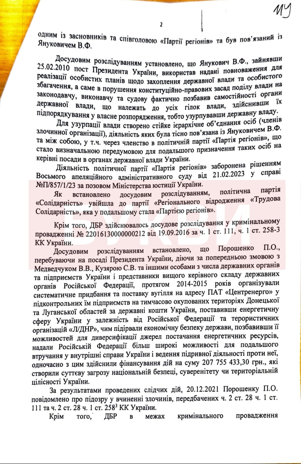 "Вугільна справа 2014-2015" – уряд придбав вугілля на окупованих територіях через компанії на підконтрольній території, кошти йшли на зарплати шахтарям. Жодних судових вироків не було.