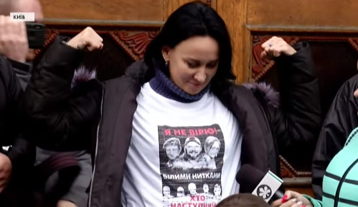 "Я не вірю. Хто наступний?" – у футболці із зображенням підозрюваних у справі журналіста Павла Шеремета ветеранка Маруся Звіробій приходить до Державного бюро розслідувань.