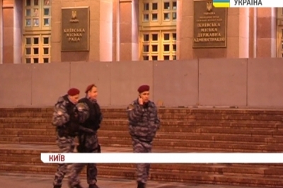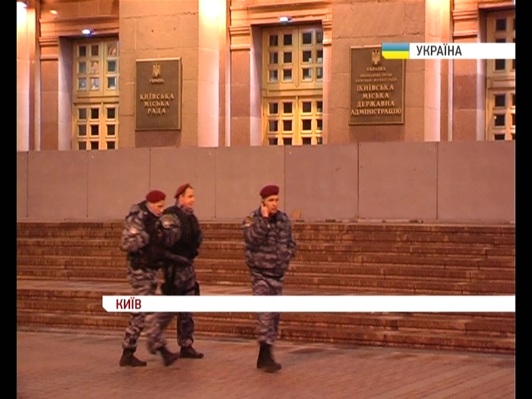 Поруч чергує кілька автобусів з беркутівцями. Наглядають за всім особисто кілька чільників столичної міліції. Що так багато правоохоронців забули на Хрещатику і чим займаються, люди в погонах відповісти нам не змогли. Завтра під будинком КМДА має бути три громадянські акції. А в будинку відбудеться чергове засідання Київради. Опозиція наполягає, що посиденьки лояльних до Гереги і Попова депутатів не більше аніж гурток за інтересами, адже термін повноважень Київради давно вичерапено.