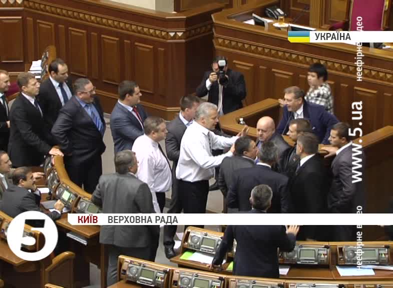 Під час виступу депутата від КПУ Миколи Дзарданова, який говорив російською мовою, до трибуни підійшли свободівці, скандуючи "українська". У такий спосіб вимагали від колеги висловлюватися українською мовою. Попри це, комуніст продовжив свій виступ російською, після чого в його бік полетіли якісь документи. У відповідь парламентарій почав замахуватися на свободівців пляшкою з водою, яка стояла на трибуні.