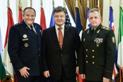 Під час візиту до Брюсселя Петро Порошенко зустрівся з командувачем військ НАТО Філіпом Брідлавом та представниками оперативного командування НАТО в Європі. Обговорювали питання співробітництва Альянсу та Міністерства оборони України.