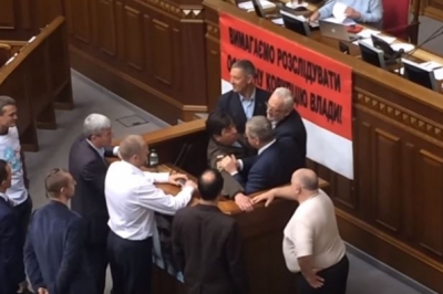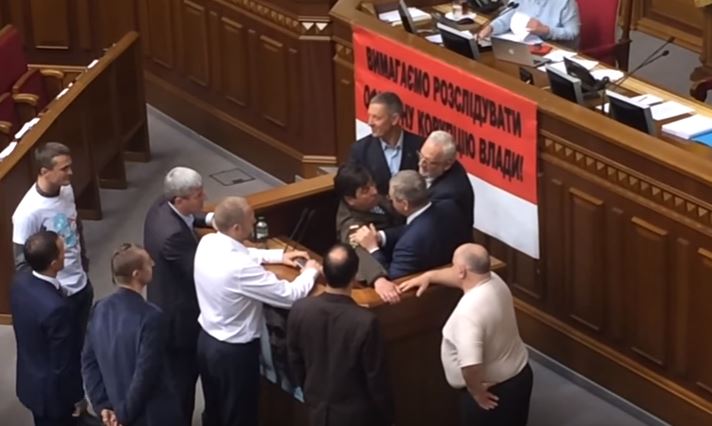 Згодом, до трибуни підійшли ще кілька депутатів, тоді виникла невелика штовханина. Через інцидент, який влаштували депутати, перший віце-спікер Ірина Геращенко закрила ранкову сесію достроково.